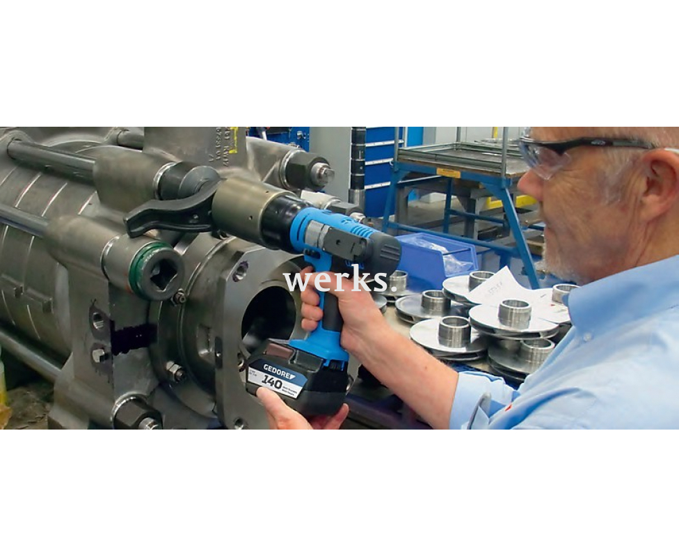 Профессиональный аккумуляторный гайковерт Losomat серии LDA. Оснащен квадратом 1 дюйм и редуктором, обеспечивающим 7 об/мин для создания высокого крутящего момента. Применяется для монтажа ответственных конструкций, где требуется автономность и контроль усилия.