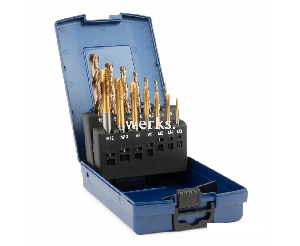 Набор машинных метчиков B HSSE-TiN DIN371/376 M3-M10/M12 Silver 14 предметов GSR BRB09100110