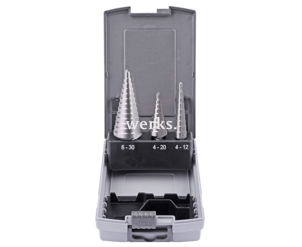Набор сверл ступенчатых 4-12 4-20 6-30 мм HSSE прямая канавка GSR B04010030.