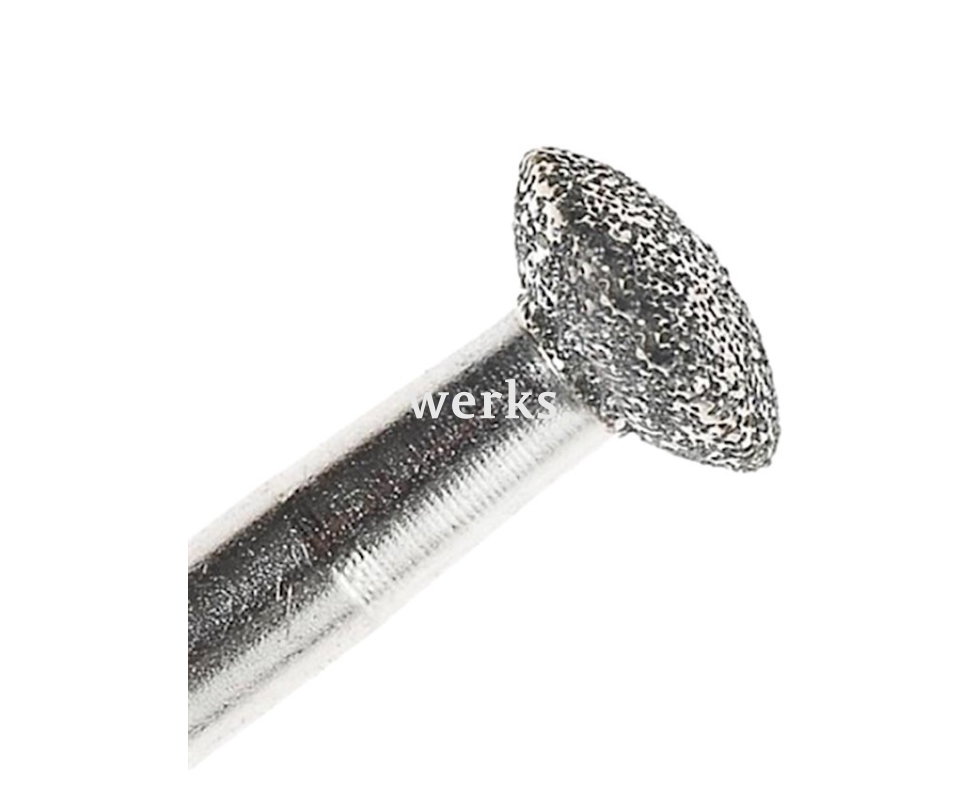 Бор с двояковыпуклой линзой выполнен из прочной нержавеющей стали с равномерным алмазным покрытием. Его длина составляет 44 мм, вал имеет диаметр 2.35 мм, а диаметр алмазного наконечника равен 5 мм. Этот инструмент предназначен для шлифовки и гравировки твердых материалов, таких как стекло, сталь, фарфор, керамика и пластик.