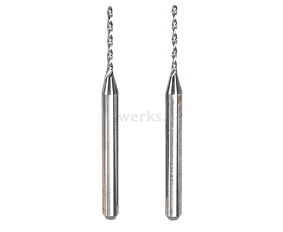 Два сверла, изготовленные из прочного карбида вольфрама. Их длина составляет 38 мм, хвостовик имеет диаметр 3.0 мм, а рабочая часть достигает 1.0 мм при длине 8 мм. Эти сверла предназначены для работы со стеклом, полудрагоценными камнями, фарфором, керамикой, мрамором и другими твердыми материалами.