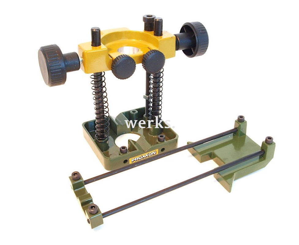 Профессиональная опорная поверхность, совместимая со всеми устройствами серии Proxxon Micromot с стандартной шейкой 20 мм. Изготовлена из алюминия, полученного методом литья под давлением. Предназначена для обработки фасок, фрезеровки пазов, канавок и кромок с использованием параллельного упора (максимальная длина 150 мм) или циркуля с центрирующим штифтом (100 - 400 мм). Также подходит для сверления круглых деталей через отверстие в направляющей пластине. Глубина обработки регулируется с помощью предустановленных фиксированных значений. В комплект входят циркуль и параллельный упор.