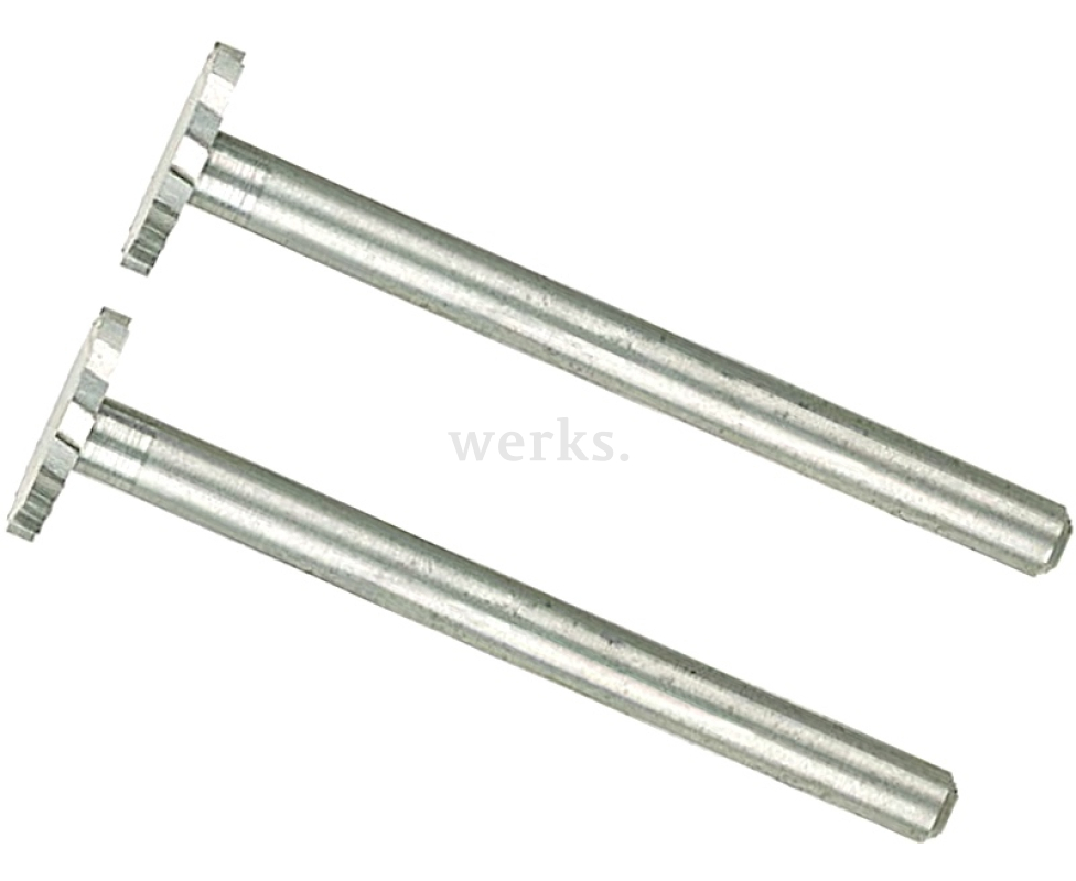 Две дисковые фрезы, изготовленные из высокопрочной вольфрам-ванадиевой стали. Рабочая часть и хвостовик выполнены из одной заготовки. Длина составляет 38 мм, вал имеет диаметр 3.0 мм, а диаметр рабочей части равен 10 мм. Для точной и надежной фиксации фрез рекомендуется применять стальные цанги Micromot. Максимальная скорость вращения достигает 50 000 об./мин. Эти фрезы предназначены для фрезерования, профилирования и обработки пазов в материалах, таких как цветные металлы, дерево, пластик и гипс.