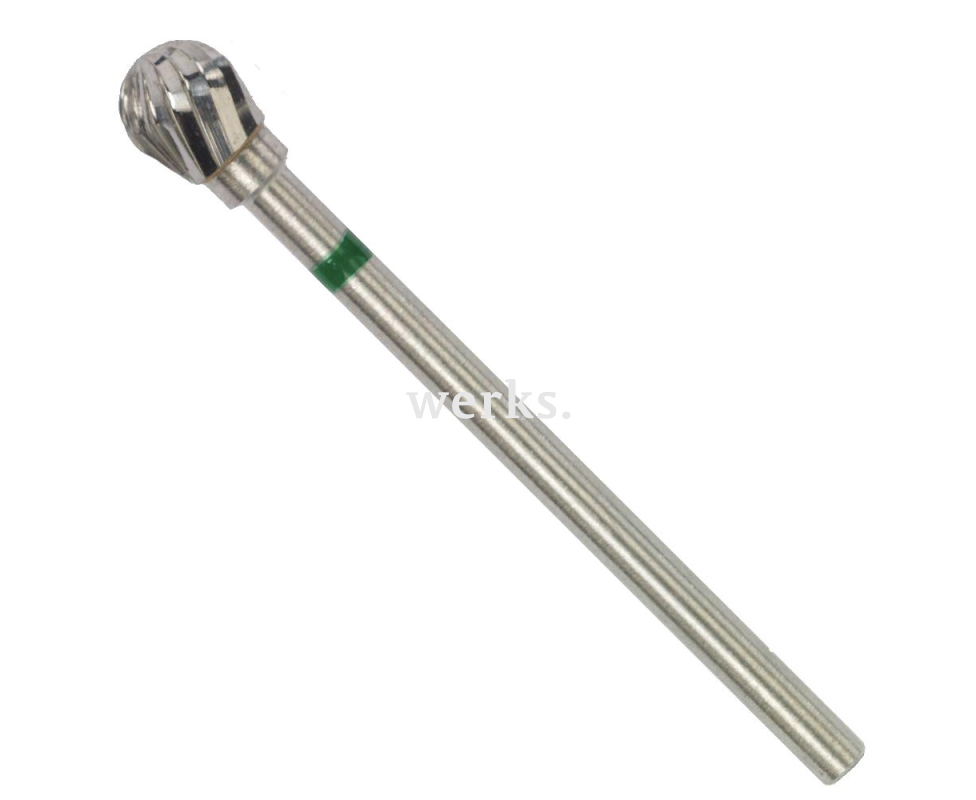 Сферическая фреза, изготовленная из высокопрессованного мелкозернистого карбида вольфрама. Длина составляет 40 мм, диаметр вала - 2.35 мм, а рабочая часть имеет диаметр 5.0 мм. Хвостовик и рабочая часть выполнены из одной заготовки. Максимальная скорость вращения достигает 20 000 об./мин. Инструмент предназначен для обработки чугуна, закаленного чугуна, стали, стального литья, цветных металлов, стекла, пластика и углепластика.