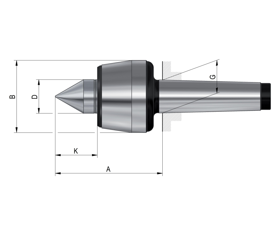 Вращающийся центр с углом наклона 60°, крепление MK 0, размер 100, стандартная конструкция N, корпус шлифованный Röhm 061740