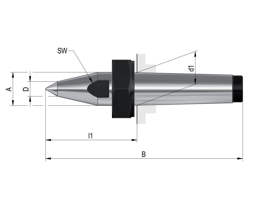Цельный центр, крепление MK 6, аналогично DIN 807, полный конец, оттяжная гайка + SW Röhm 249579