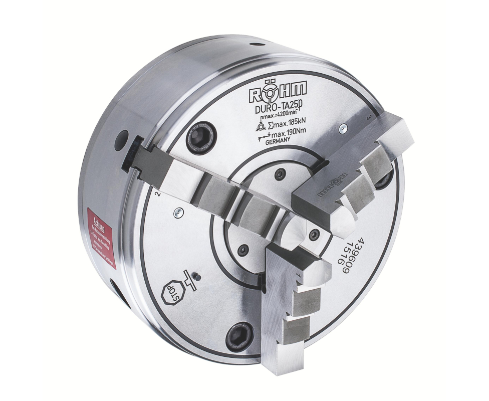 Патрон с клиновым штоком DURO-TA, размер 200, 3-кулачковый, цельные сменные кулачки Rohm 439607. Производство Röhm (Roehm), Германия.