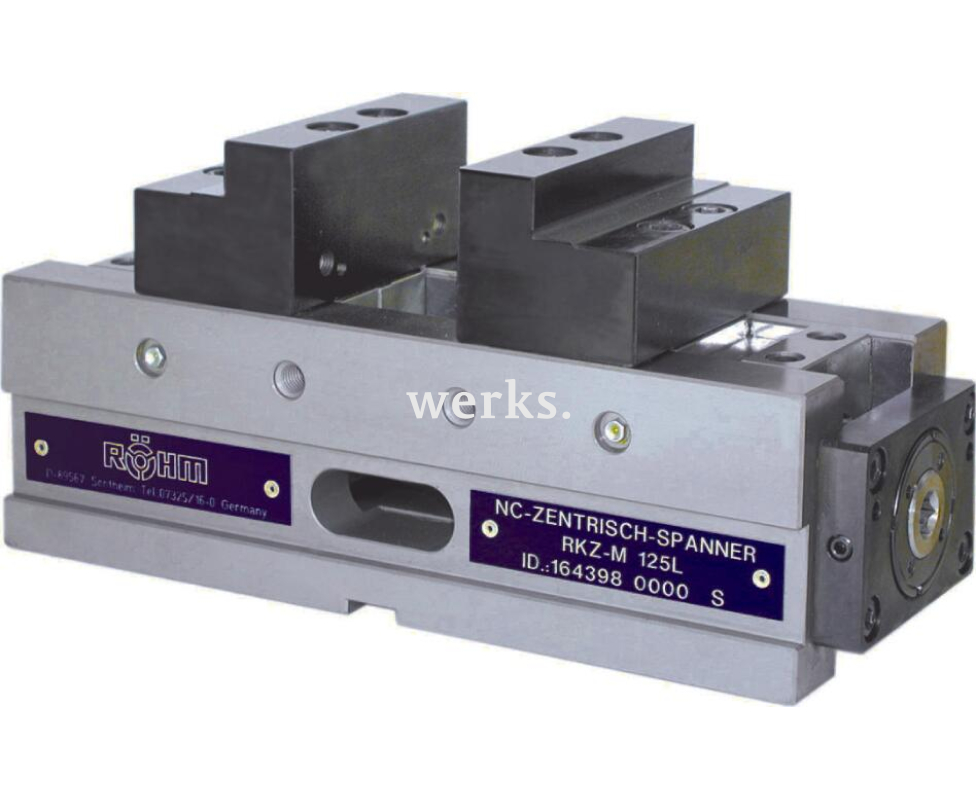 Компактные самоцентрирующие тиски NC-RKZ-M, ширина губок 92, со ступенчатыми губками Rohm 180192. Производство Röhm (Roehm), Германия.