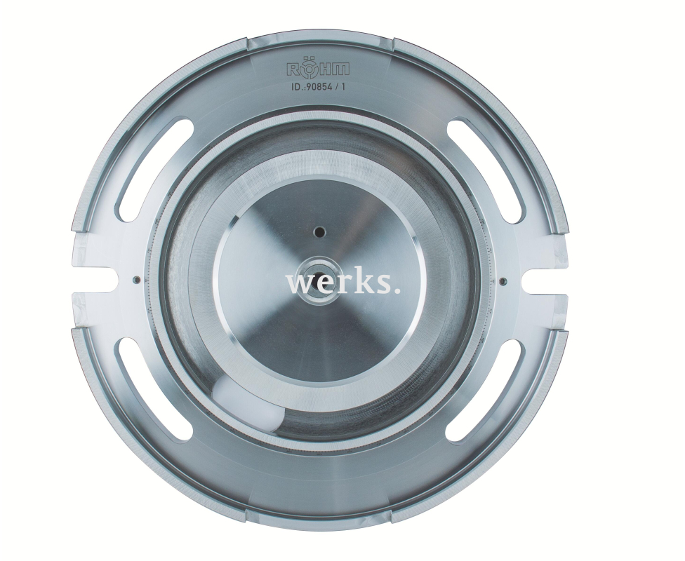 Универсальная поворотная пластина, размер 5/6, крепежные винты + гайки для Т-образных пазов, заземляющий контактный край Rohm 090854. Производство Röhm (Roehm), Германия.