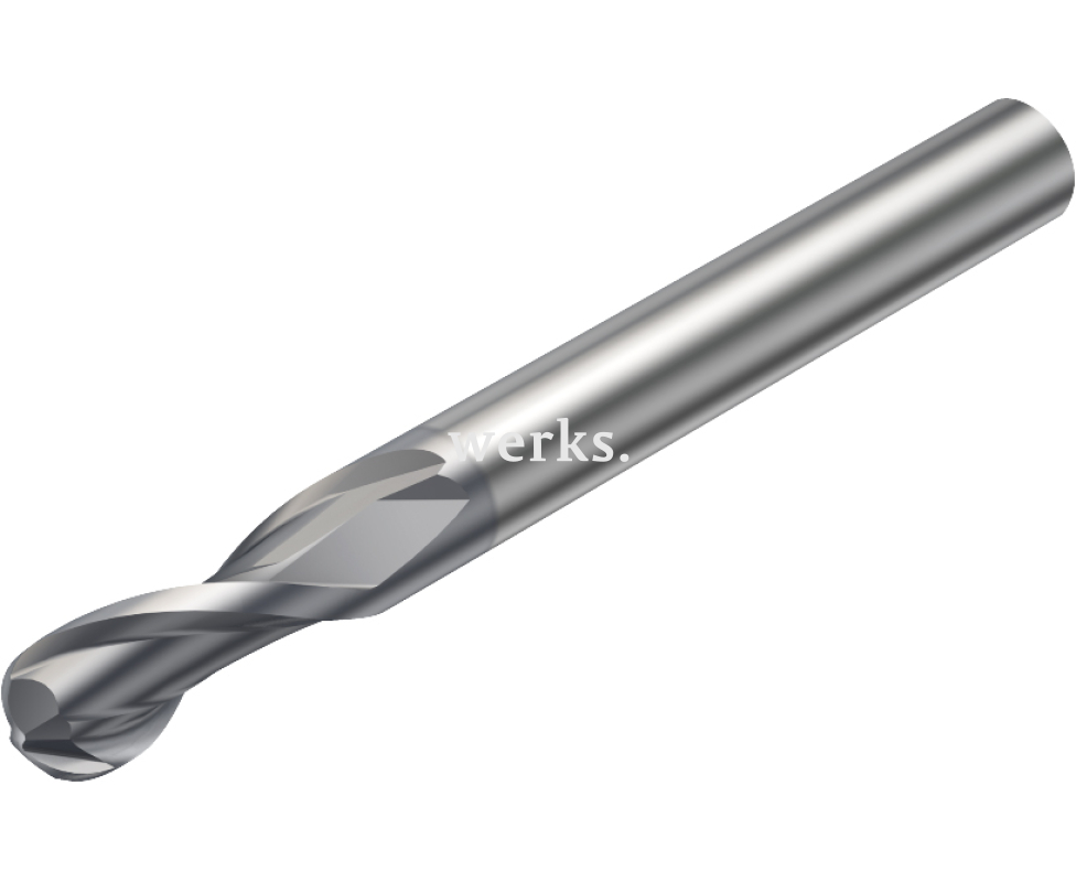 Цельнотвердосплавная сферическая фреза для профильной обработки с допуском на диаметр резания h9 и допуском на диаметр соединения h6. Используется для высокоточной обработки профилей.