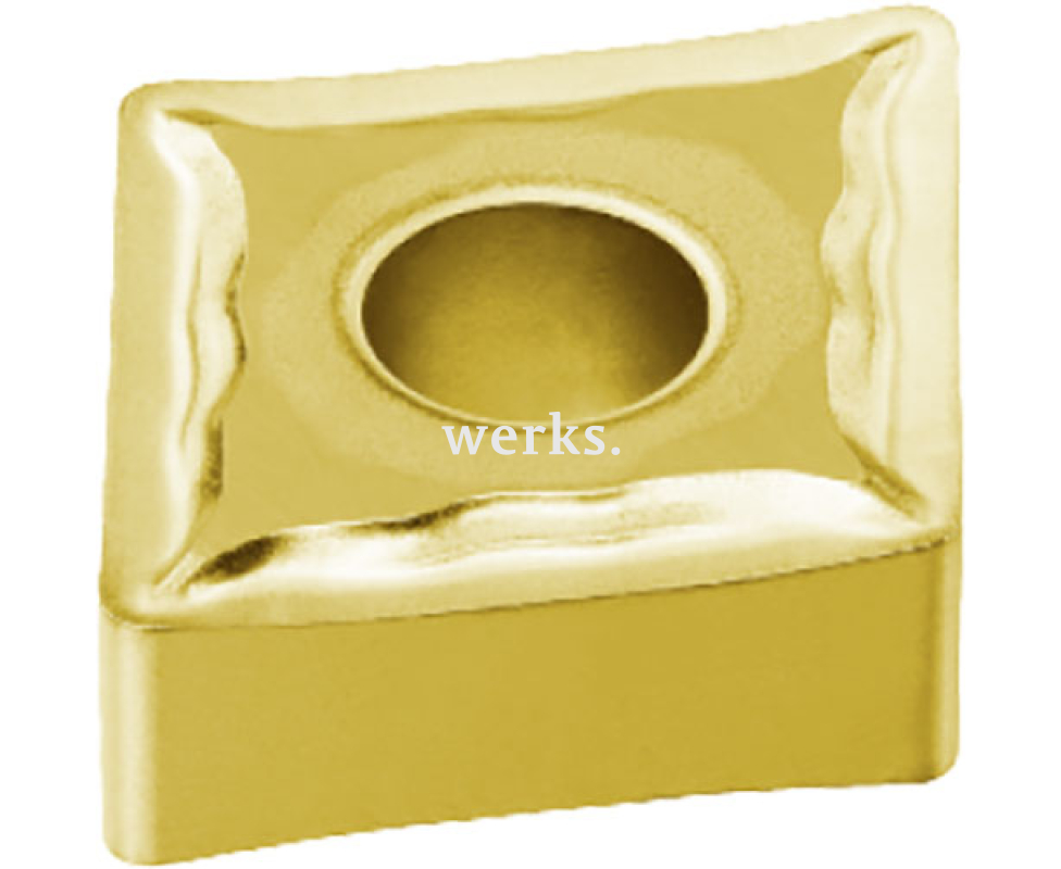 Твердосплавная сменная пластина CNMG для точения металлов имеет ромбическую форму с углом 80°. Эта двусторонняя пластина оснащена стружколомом и отверстием, а задний угол составляет 0° (негативный). Допуски: m: ±0.08-±0.18, D1: ±0.05-±0.15, S1: ±0.13. Изготавливается из сплава 235 (HC) M40 (M25-M40) с CVD-покрытием, предназначенным для черновой обработки нержавеющих сталей и отливок с грубой коркой. Прочная основа сплава обеспечивает высокую надежность режущих кромок, что делает его идеальным для прерывистого резания на низких и умеренных скоростях. Пластина также подходит для чистового точения нержавеющих сталей, обеспечивая отличный контроль над процессом стружкообразования и высокую прочность режущей кромки.