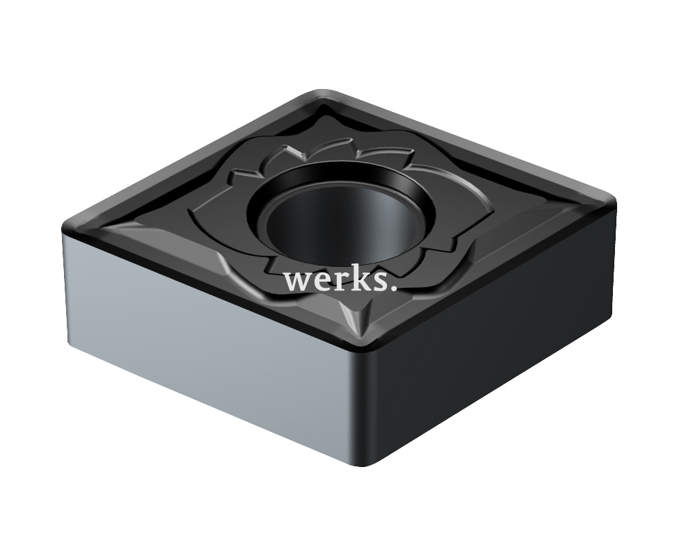 Твердосплавная сменная пластина CNMG для точения металлов имеет ромбическую форму с углом 80°. Эта двусторонняя пластина оснащена стружколомом и отверстием, а задний угол составляет 0° (негативный). Допуски: m: ±0.08-±0.18, D1: ±0.05-±0.15, S1: ±0.13. Изготовлена из твердого сплава с PVD-покрытием, что делает её идеальной для чистовой и получистовой обработки. Подходит для обработки материалов по ISO: S15 (S05-S20), включая жаропрочные и титановые сплавы.