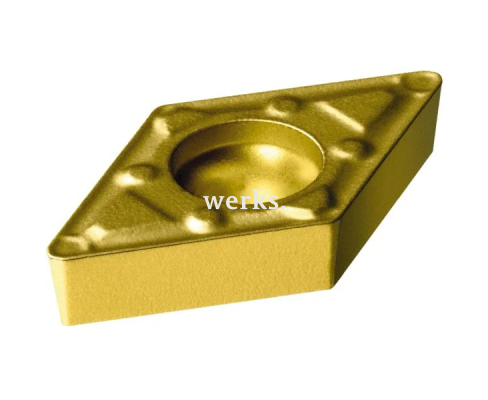 Твердосплавная сменная пластина DCMX для обработки металлов имеет ромбическую форму с углом 55°. Она фиксируется с помощью специальной конструкции и обладает задним углом 7° (позитивная). Допуски составляют: m: ±0.08-±0.18, D1: ±0.05-±0.15, S1: ±0.13. Изготовлена из кермета с PVD-покрытием, предназначена для чистовой и получистовой обработки низкоуглеродистой и низколегированной стали. Идеально подходит для случаев, когда требуется высокое качество поверхности при средних и высоких скоростях резания. Рекомендуемое значение fn x ap составляет менее 0,35 мм². Обрабатываемый материал по классификации ISO: P15 (P05-P25). Эта пластина является оптимальным выбором для чистового точения стали, обеспечивая двукратное увеличение подачи по сравнению со стандартными пластинами или значительное снижение шероховатости без изменения подачи. Обладает высокой прочностью кромки, что делает её подходящей для чистового точения стали, нержавеющей стали и чугуна с высокими значениями подач.