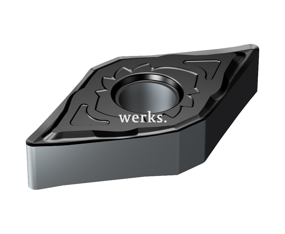 Твердосплавная сменная пластина DNGG для обработки металлов имеет ромбическую форму с углом 55°. Она двусторонняя, оснащена стружколомом и отверстием. Задний угол составляет 0° (негативный). Допуски: m: D1: 0.025, S1: ±0.13. Изготовлена из твердого сплава с PVD-покрытием, что делает ее идеальной для чистовой и получистовой обработки. Подходит для работы с материалами по ISO: S15 (S05-S20).