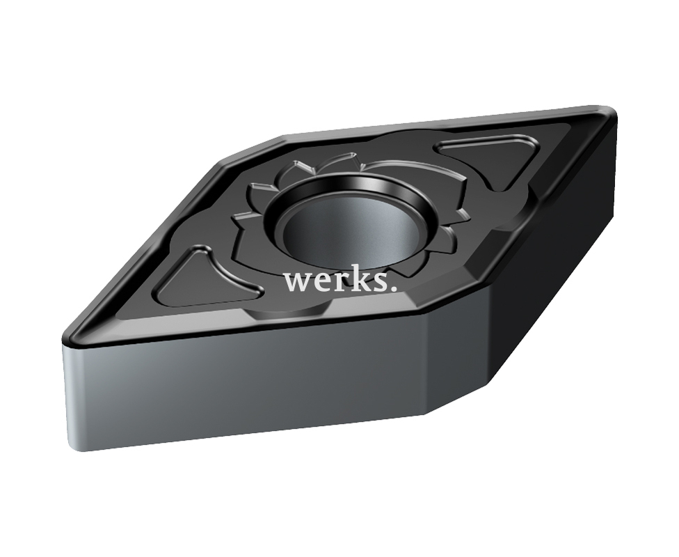 Твердосплавная сменная пластина DNMG для точения металлов имеет ромбическую форму с углом 55°. Эта двусторонняя пластина оснащена стружколомом и отверстием. Задний угол составляет 0° (негативный). Допуски: m: ±0.08-±0.18, D1: ±0.05-±0.15, S1: ±0.13. Изготовлена из твердого сплава с PVD-покрытием, что делает ее идеальной для чистовой и получистовой обработки. Подходит для обработки материалов по ISO: S15 (S05-S20), включая жаропрочные и титановые сплавы.
