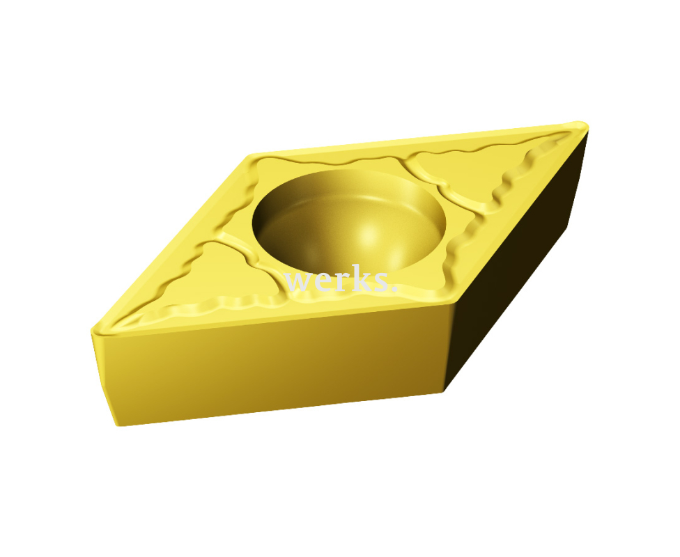 Твердосплавная сменная пластина DPMT для металлообработки имеет ромбическую форму с углом 55°. Оснащена стружколомом и отверстием под винт (40-60°). Задний угол составляет 11° (позитивный). Допуски: m: ±0.08-±0.18, D1: ±0.05-±0.15, S1: ±0.13. Изготовлена из твердого сплава с CVD-покрытием, что делает ее идеальной для черновой и получистовой обработки. Этот материал отлично подходит для прерывистого резания. Обрабатываемый материал по стандарту ISO: M25 (M15-M35). Рекомендуется для получистового точения нержавеющих сталей с высокой универсальностью.