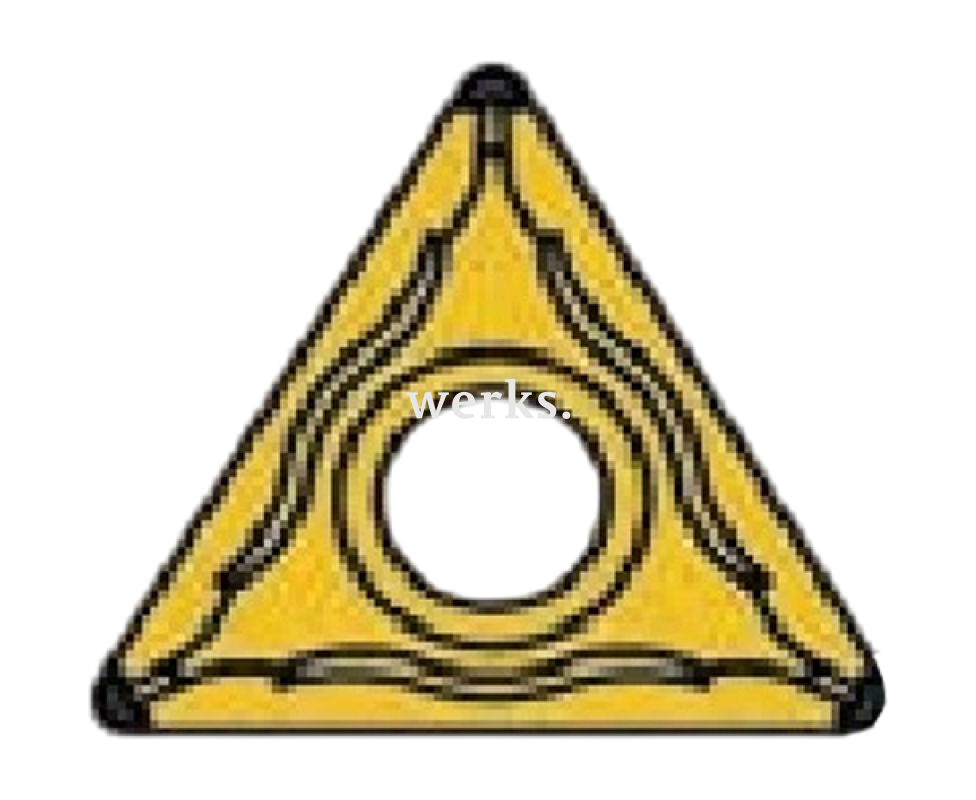 Твердосплавная сменная пластина TCMT треугольной формы предназначена для точения металлов. Она оснащена стружколомом и отверстием под винт с углом 40-60°. Задний угол составляет 7° (позитивный). Допуски: m: ±0.08-±0.18, D1: ±0.05-±0.15, S1: ±0.13. Идеально подходит для получистового точения стали, включая нержавеющую, а также чугуна и жаропрочных сплавов.