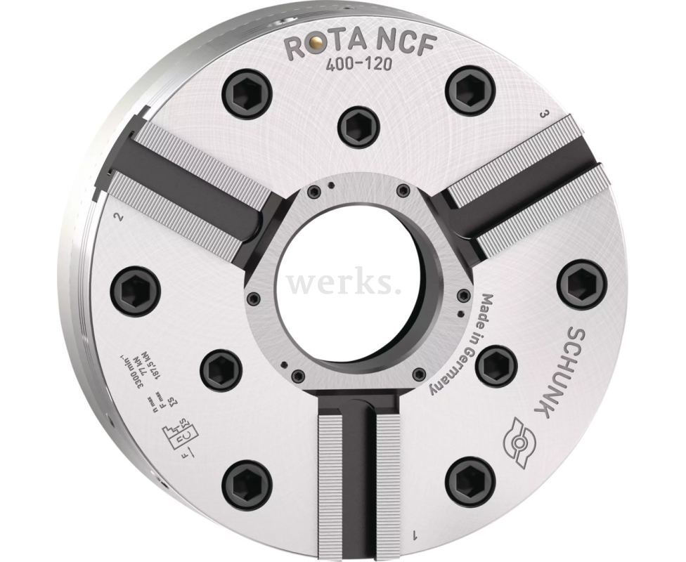 Токарный патрон Schunk ROTA NCF 400-120 A11-SV90° оснащен приводом A11 и имеет диаметр 400 мм. Кулачки SV90° создают равномерное усилие зажима по всей поверхности заготовки. Патрон обеспечивает высокую повторяемость в автоматических циклах. Он используется в крупносерийном производстве для обработки корпусных деталей.