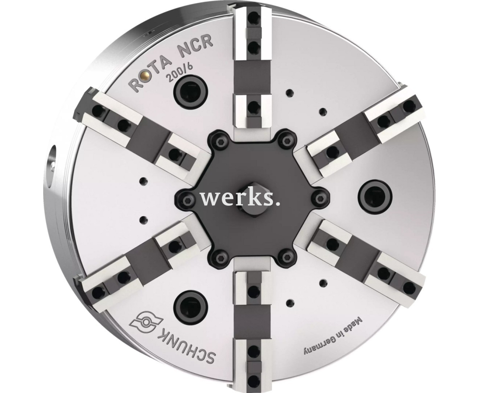 Токарный патрон Schunk ROTA NCR-F 200 Z170-KV с диаметром 200 мм и короткими кулачками KV предназначен для обработки заготовок с малым вылетом. Конструкция обеспечивает высокую жесткость и виброустойчивость. Патрон гарантирует точное центрирование и высокую повторяемость. Его используют для обработки дисковых и втулочных деталей среднего размера.