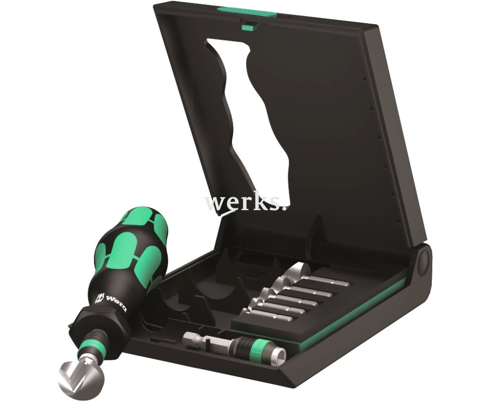 8 элементов: ручной держатель Kraftform 816 R с быстросменным патроном; универсальный держатель 888/4/1 K Rapidaptor, предназначенный для зажима в винтоверте или сверлильном патроне. В комплект входят 6 насадок для конической раззенковки М3-М10 с приводом 1/4', совместимые с винтовертами, соответствующими стандарту DIN ISO 1173-D 6,3. Упаковано в прочный и компактный пластиковый кейс, удобный для хранения и транспортировки.
