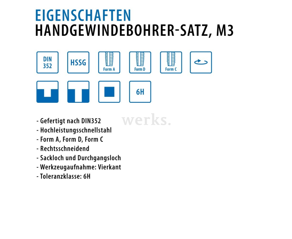 Ручные метчики набором DIN 352 HSSG M 3 Werks W.210260