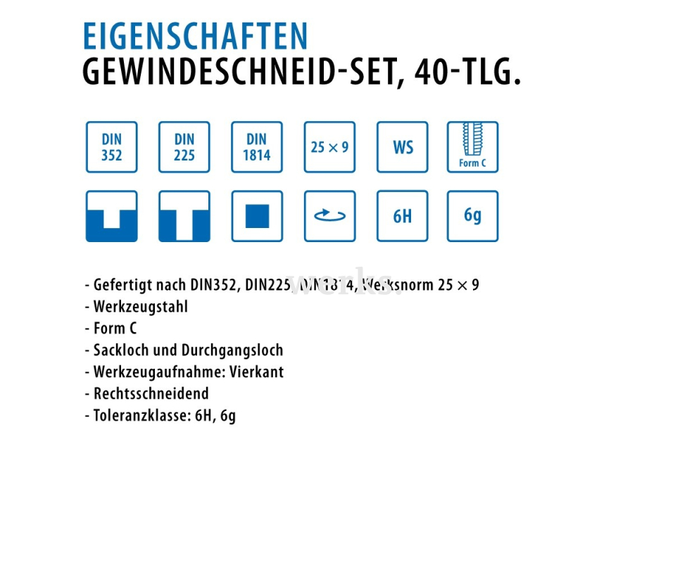40-пр. Набор метчиков, плашек, свёрл M3 - M12 XC Werks W.1412080