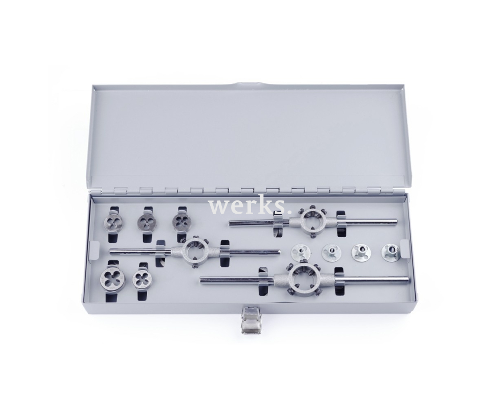 19-пр. Набор плашек DIN EN 22568 HSS М3-М12 с направляющими и держателями Werks W.16608040