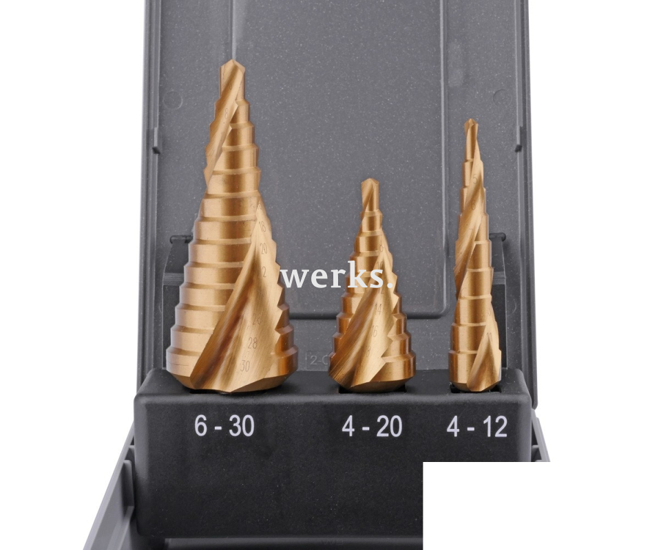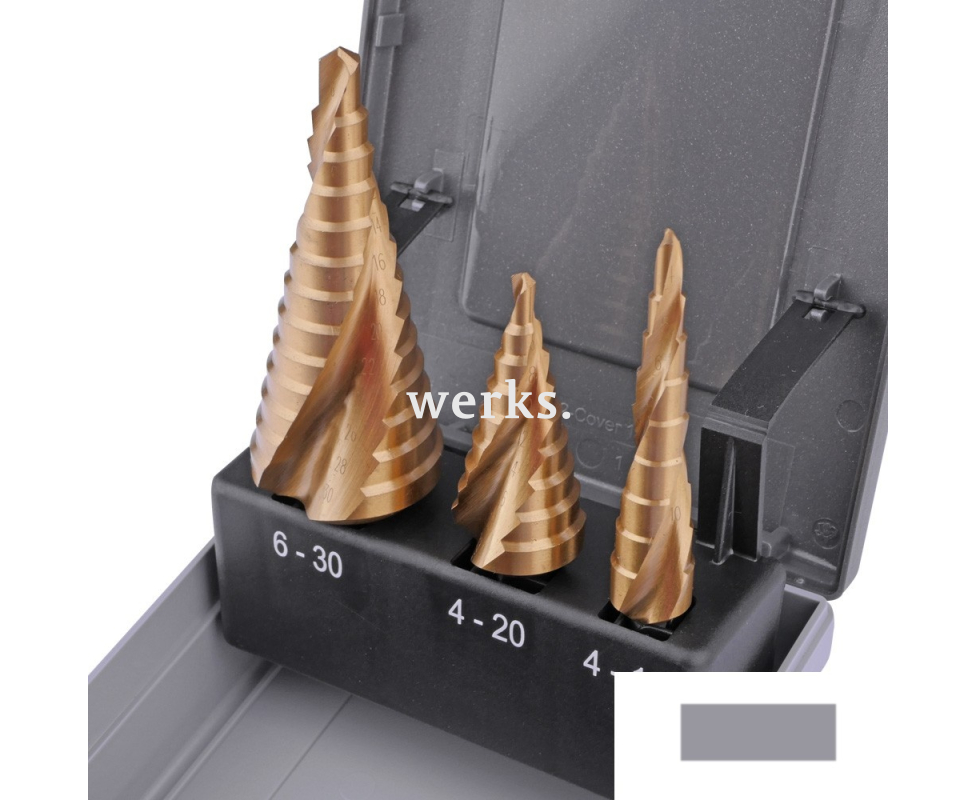 Набор ступенчатых свёрл 4-12 4-20 6-30 mm, HSSE TiN, винтовое Werks W.8020280
