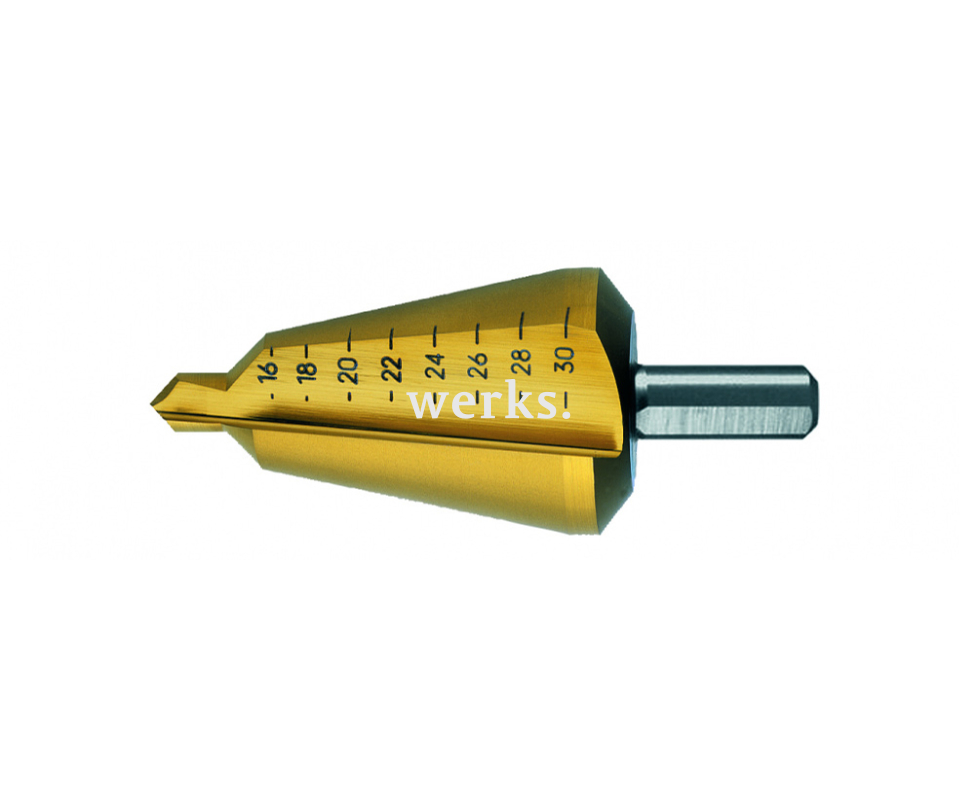 Профессиональное конусное сверло по металлу Zira ZI-500013 предназначено для бесступенчатого сверления тонких металлических листов без риска деформации в области сверления. Оно имеет диапазон диаметров от 4 до 30 мм и длину 130 мм. Изготовлено из быстрорежущей стали HSS с покрытием из нитрида титана (TiN). Шлифовка выполнена с использованием кубического нитрида бора (CBN), имеет трехплоскостной хвостовик, две режущие кромки и прямую стружечную канавку.