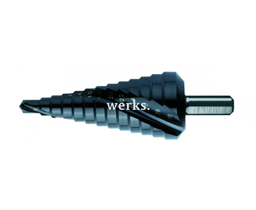 Сверло по металлу 13-ступенчатое Zira HSS TiAlN 6-30 х 130 мм ZI-500622 со спиральной канавкой