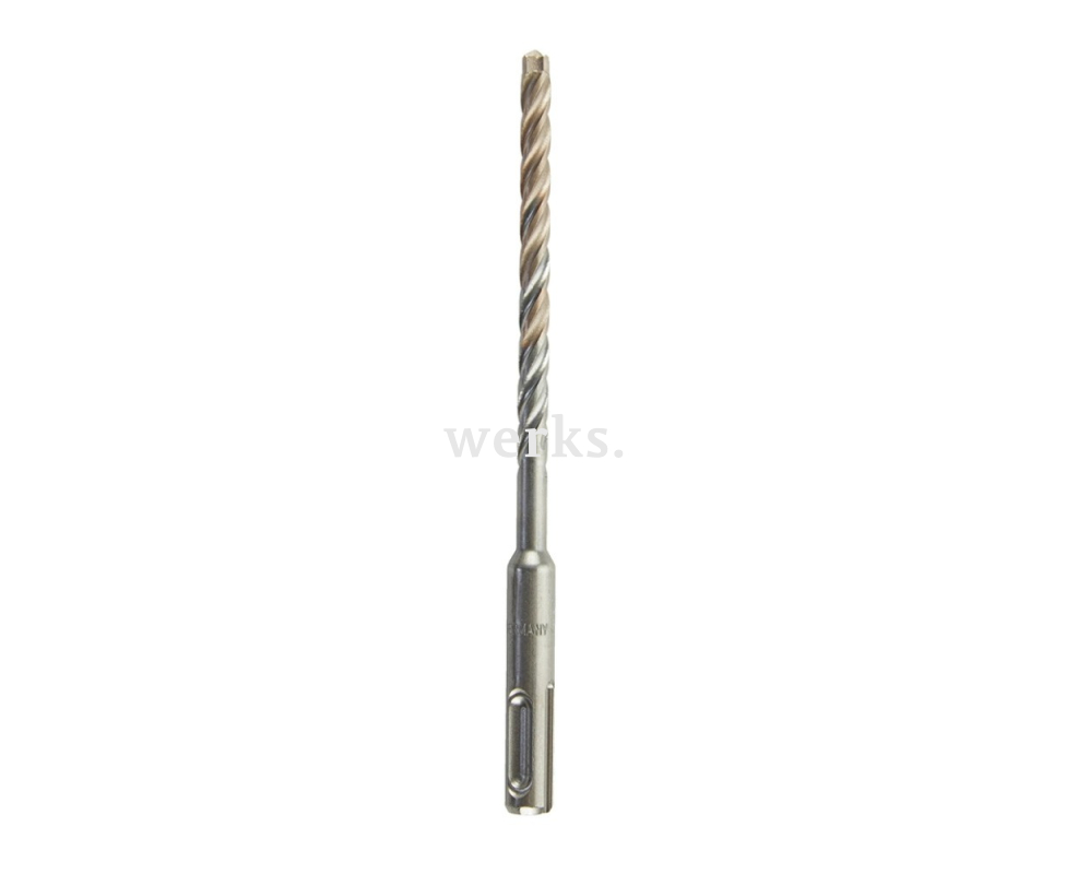 Бур DeWALT DT8914-QZ с хвостовиком SDS-Plus диаметром 14 мм и длиной 300 мм предназначен для сверления глубоких отверстий в бетоне и камне. Цельнокованый стержень из высоколегированной хром-никелевой стали обеспечивает прочность на кручение до 100 Н·м и устойчивость к излому. Четыре режущие кромки из карбида вольфрама марки ВК8 с алмазной заточкой под углом 130 градусов гарантируют быстрое заглубление и чистоту кромки отверстия. Шнековая спираль с углом наклона 35 градусов оптимизирована для эффективного отвода буровой пыли и предотвращения заклинивания.