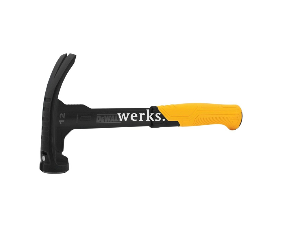 Молоток-гвоздодёр DeWALT DWHT51135-0 имеет кованую головку из высокоуглеродистой стали 70Г и фиберглассовую рукоятку с резиновой накладкой. Специальная геометрия когтя позволяет легко извлекать гвозди. Эргономичная рукоятка поглощает вибрацию и обеспечивает надежный хват. Сбалансированный вес и полированная ударная поверхность обеспечивают точность и силу удара. Вес 800 г.