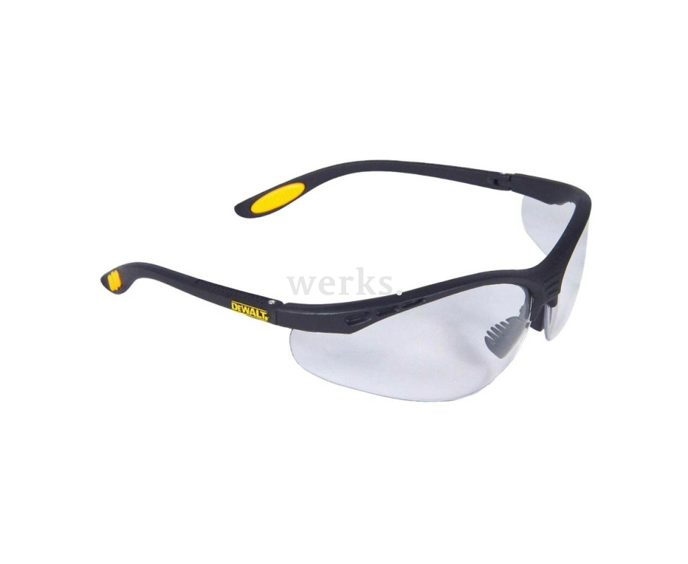 Защитные очки DeWALT DPG58-1D с фотохромными линзами (прозрачные/темные). Оптическая категория 1 с защитой от УФ 400 нм. Система вентиляции AntiFog и мягкие носовые упоры. Соответствуют стандартам EN166, ANSI Z87.1. Ширина линзы 120 мм, вес 45 г.