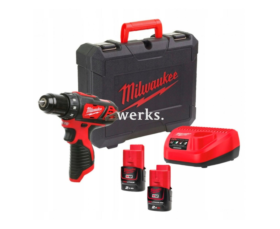 Дрель Milwaukee M12 BDD-202С (4933441915) с бесщеточным двигателем POWERSTATE™. Максимальный момент 35 Н·м. Электронная регулировка скорости 0-400/0-1500 об/мин. Встроенный индикатор заряда батареи.
