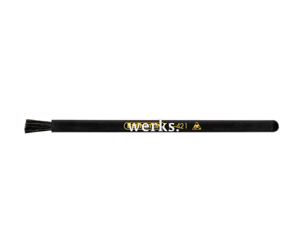 Антистатическая узкая щетка, выполненная из натуральной щетины и оснащенная токоотводящей пластиковой ручкой, предназначена для контактной очистки прецизионных электронных компонентов. Ширина рабочей зоны составляет 6 мм. 7-421