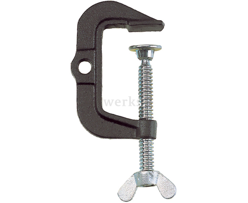 Струбцина для сварки CP с Т-образной ручкой Bessey BE-CP-F представляет собой высокоэффективный инструмент. Она имеет С-образную форму, ширина зажима составляет 50 мм, а длина выступа — 30 мм. Изготовлена из прочного ковкого чугуна и оснащена местами для подключения массы. Этот инструмент является незаменимым помощником в процессе сварочных работ.