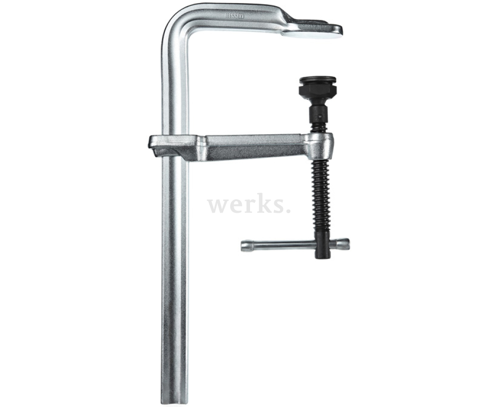 Надежная и высокоэффективная струбцина classiX GSM Bessey BE-GSM30 с шириной зажима 300 мм и профилем рейки 30х15 мм. U-образная скользящая скоба, выполненная из кованой стали повышенной прочности, обеспечивает линейную передачу усилий и способна выдерживать значительные нагрузки. Зажимное усилие достигает 11000 Н, а момент затяжки составляет 40 Нм. Специальная огнеупорная прижимная пластина с металлической вставкой может наклоняться под углом до 35°.