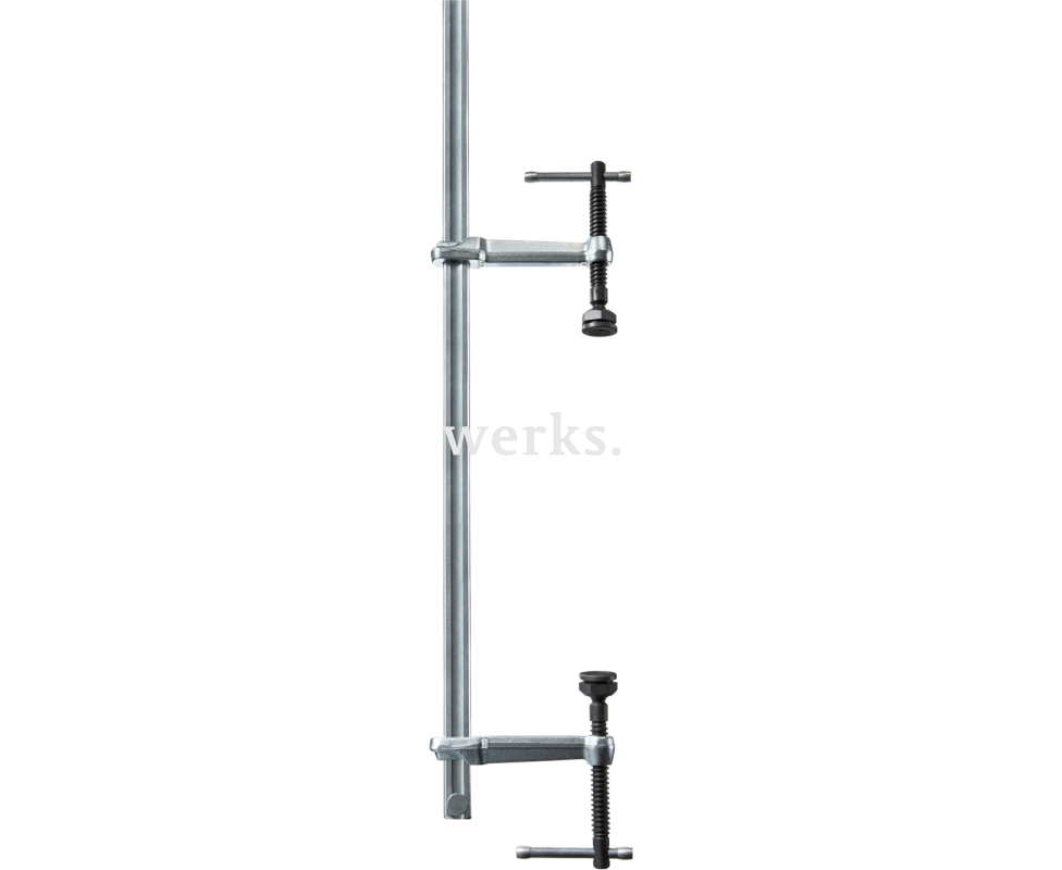 Профессиональный набор высокоэффективных подстраивающихся струбцин GSV Bessey BE-GSV300M имеет ширину зажима 3000 мм и профиль рейки 30х15 мм. Модульная конструкция позволяет использовать его в различных вариантах благодаря сменным подвижным скобам. Все штанги оборудованы концевыми предохранителями, которые можно снять без использования инструмента. Установленную подвижную скобу можно легко переустановить с зажима на распор, заменить на другую скобу или дополнить дополнительной.
