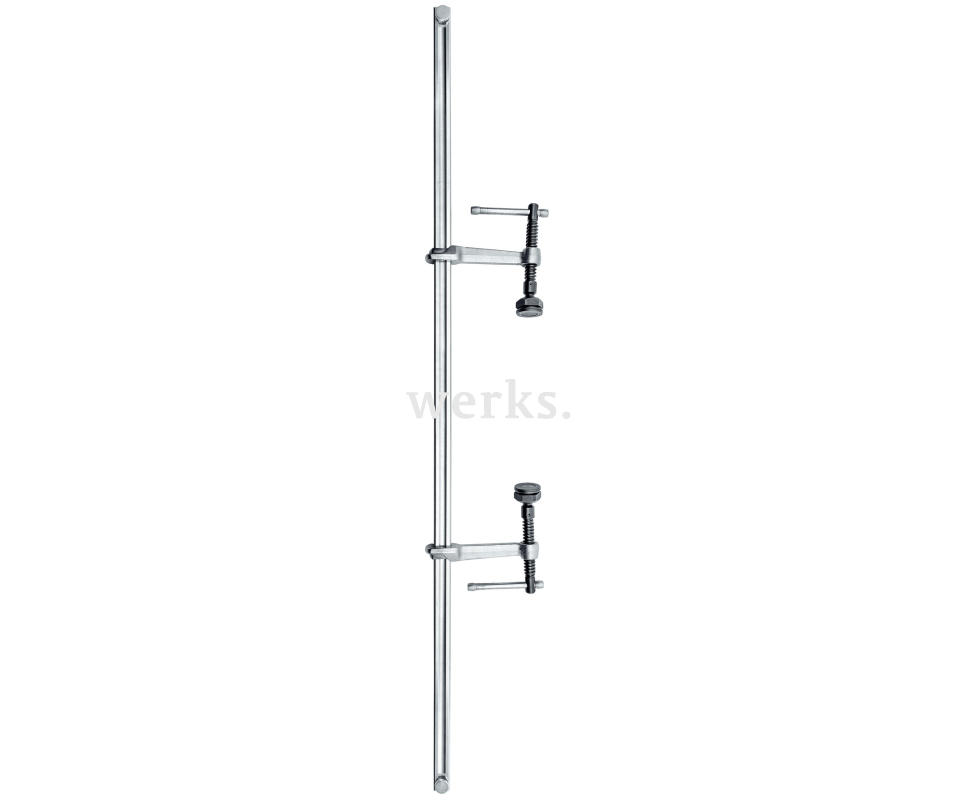 Высокопроизводительный набор адаптивных струбцин SLV Bessey BE-SLV150M с зажимом шириной 1500 мм и профилем рейки 27х13 мм. Модульная структура позволяет использовать различные сменные подвижные скобы для разнообразных задач. Струбцину можно установить через отверстие в детали или заготовке.
