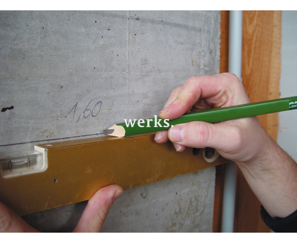 Профессиональный карандаш для разметки на камне и бетоне Bleispitz 0334 длиной 240 мм с твердостью грифеля 6H. Изготовлен из липы. Предназначен для работы на твердых материалах, таких как бетон, кирпич и камень. Обладает широким графитовым стержнем, высокой прочностью и устойчивостью к атмосферным воздействиям.