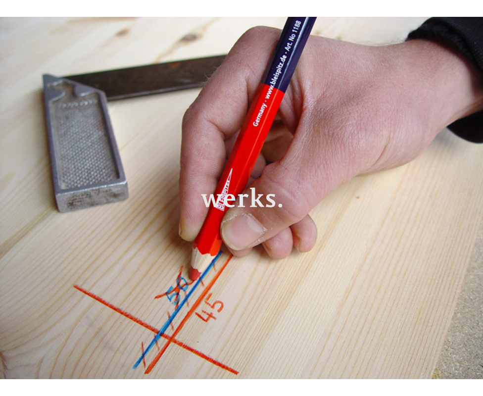Двухцветный двусторонний разметочный карандаш Bleispitz 1171 имеет шестигранную форму и длину 175 мм. Он оснащен красным и синим графитовыми грифелями. Изготовлен из высококачественных древесных материалов, легко затачивается и обладает высокой прочностью. Идеально подходит для разметки как холодных, так и горячих труб водоснабжения, а также для работы с различными поверхностями.