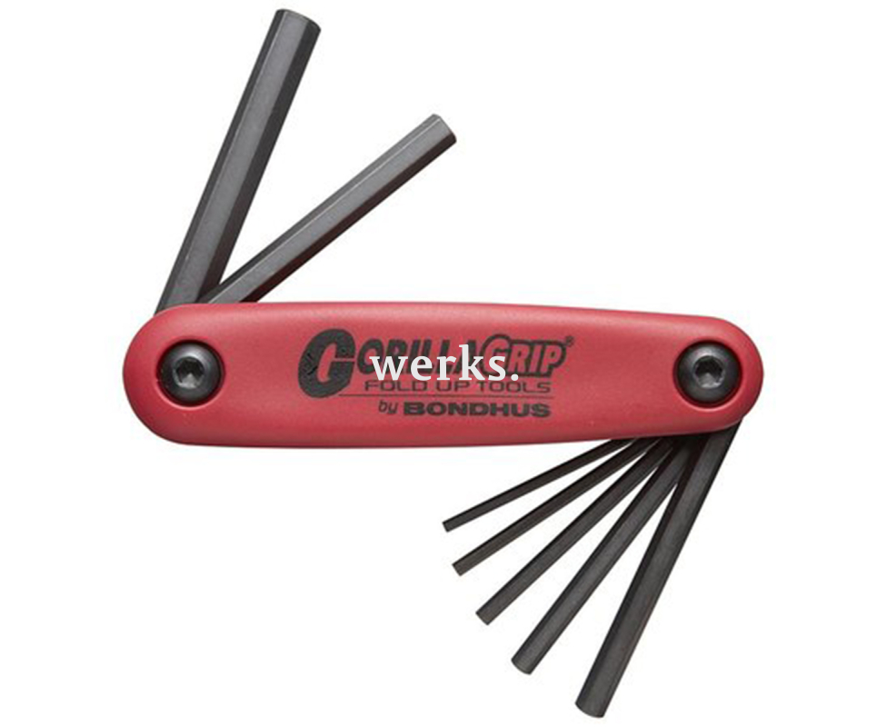 Складной набор из 7 шестигранных ключей с размерами от 1.5 до 6 мм Bondhus GorillaGrip 12592. Компактный комплект шестигранников, который не займет много места в ящике или шкафу и будет удобен для выездных работ. Ключи можно выдвигать с обеих сторон. Мультитул имеет стопор на 90°.