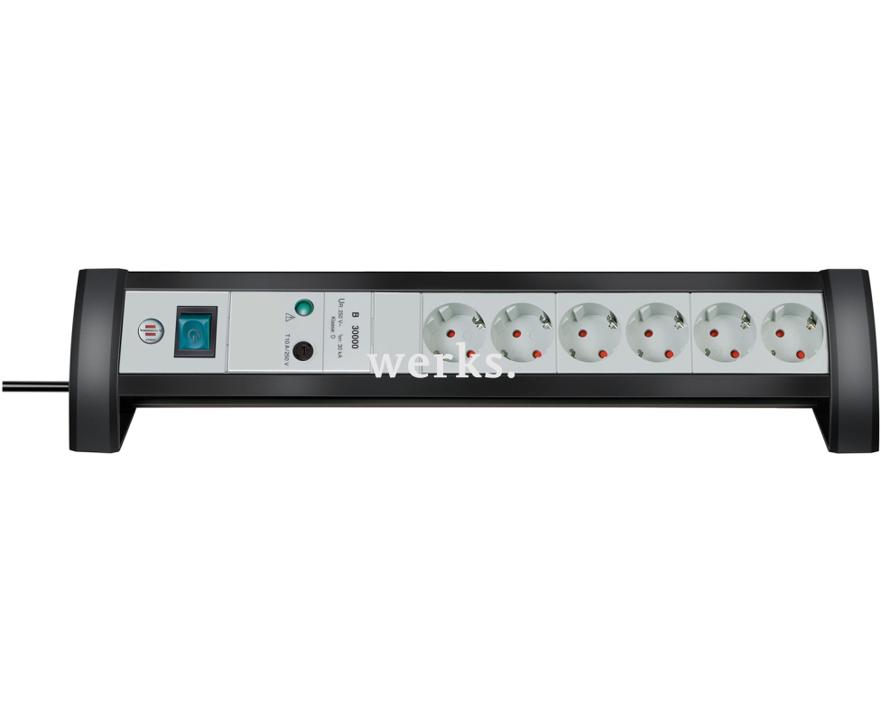 Сетевой фильтр с кабелем длиной 3 метра и максимальным током утечки до 30000 А - Brennenstuhl Premium-Office-Line H05VV-F 3G1,5 1156350416. Он надежно защищает от перепадов напряжения, помех в сети и косвенных ударов молнии. Оснащен шестью розетками, расположенными под углом 45°.