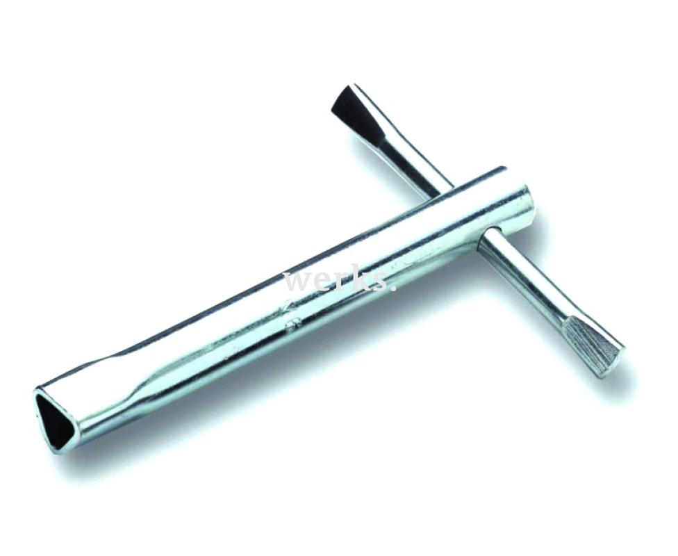 Трубчатый трехгранный ключ для шкафов с воротком М5 предназначен для открытия электрошкафов и электрощитов. Размер грани составляет 9 мм. Он выполнен из высококачественной инструментальной стали с оцинковкой. 112904