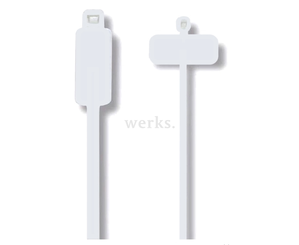 Хомуты натурального оттенка с площадкой для маркировки. Не содержат галогенов. Длина составляет 10 см. Обхват - Ø 4 - 18 мм. Размер площадки для маркировки - 8 х 25 мм. Упакованы по 100 штук. 181420
