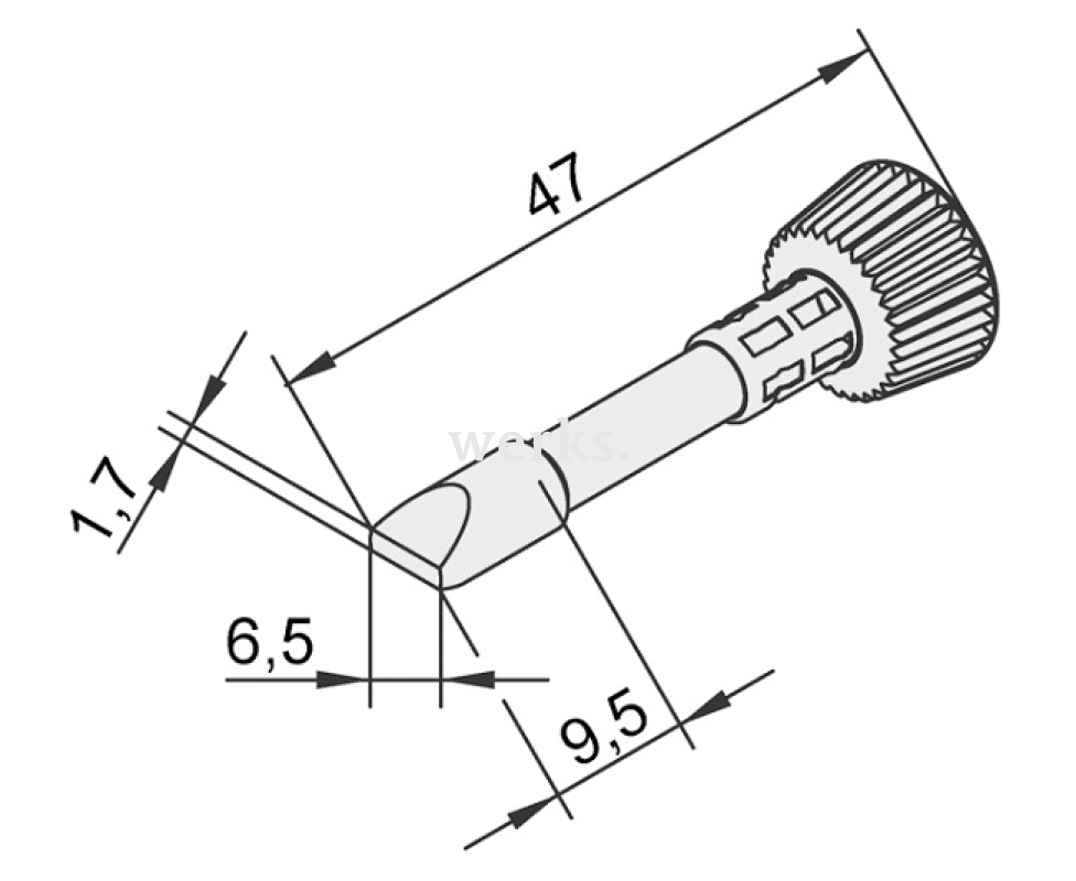 Сменное прямое жало для паяльников Ersa I-TOOL, I-TOOL NANO, I-TOOL PICO. Имеет форму усеченного конуса с обеих сторон. Оснащено специальным покрытием, которое продлевает срок службы. Диаметр жала составляет 6,5 мм. Внешний диаметр обоймы равен 5,2 мм. Внутренний диаметр обоймы составляет 3,5 мм. Длина жала — 47 мм. Сменное паяльное жало подходит для паяльников Ersa I-TOOL, I-TOOL NANO, I-TOOL PICO.