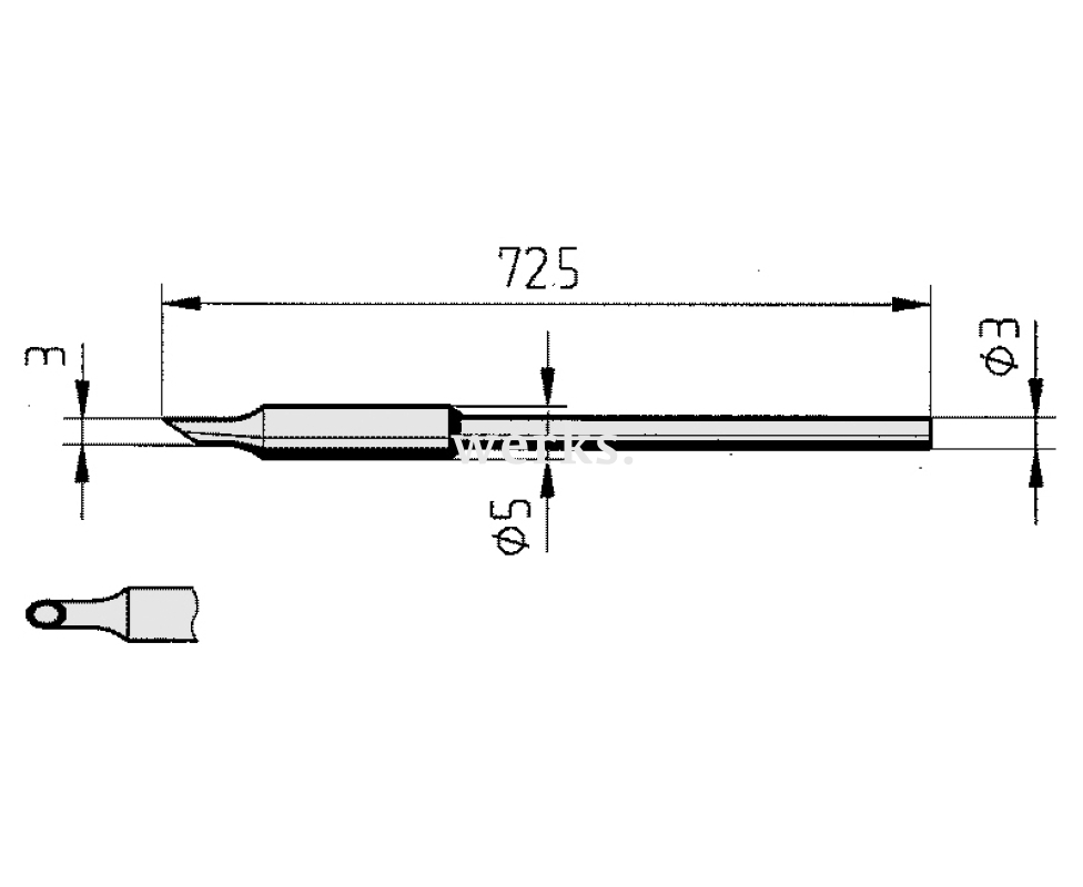 Сменное прямое жало для паяльника MICRO TOOL. Имеет форму скошенного конуса с углублением и специальное покрытие ERSADUR, что способствует увеличению срока службы. Диаметр жала - 3,0 мм. Внешний диаметр обоймы - 3,0 мм. Вес - 5 г. Длина - 72,5 мм. Сменное прямое паяльное жало для паяльника MICRO TOOL.