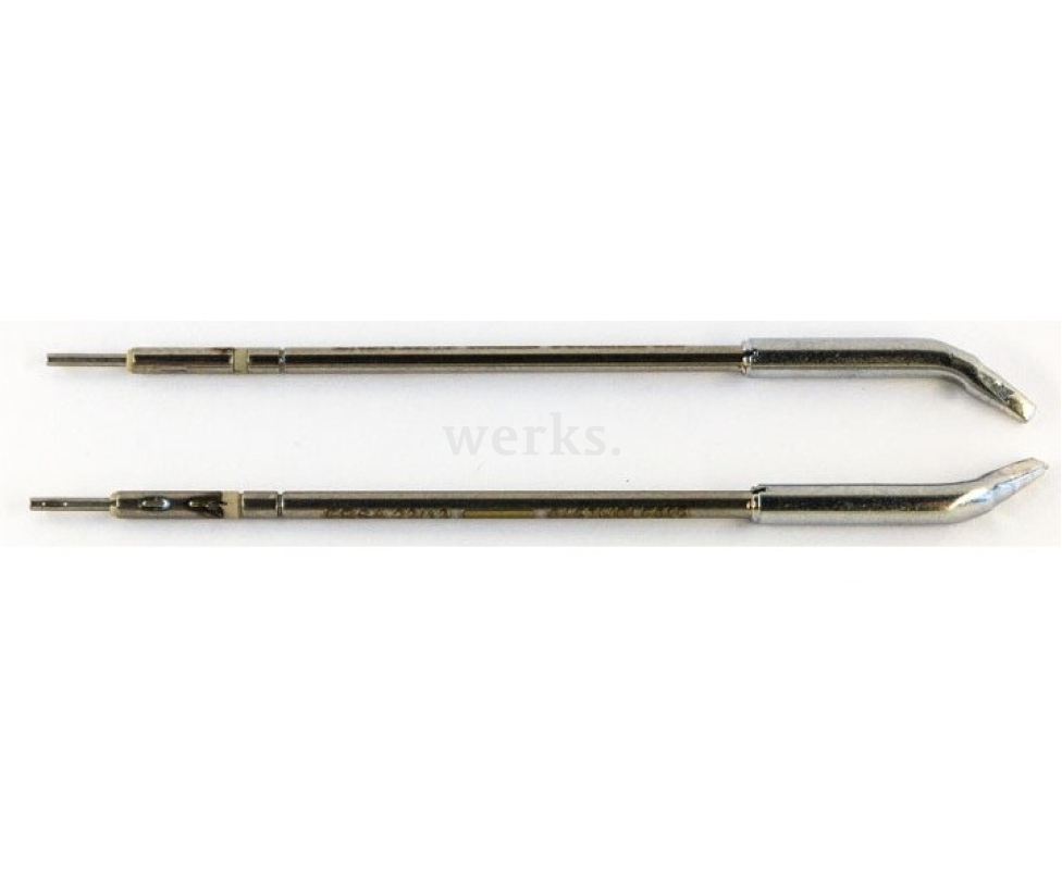 Специальные насадки для термопинцета ChipTool предназначены для выпаивания компонентов. В набор входят две насадки с долотообразным профилем и уникальным покрытием, которое продлевает срок их службы. Диаметр жала составляет 1,5 мм. Внешний диаметр обоймы - 3 мм. Эти насадки используются с термопинцетом ChipTool в паяльных станциях i-Con VARIO 2 и i-Con VARIO 4.