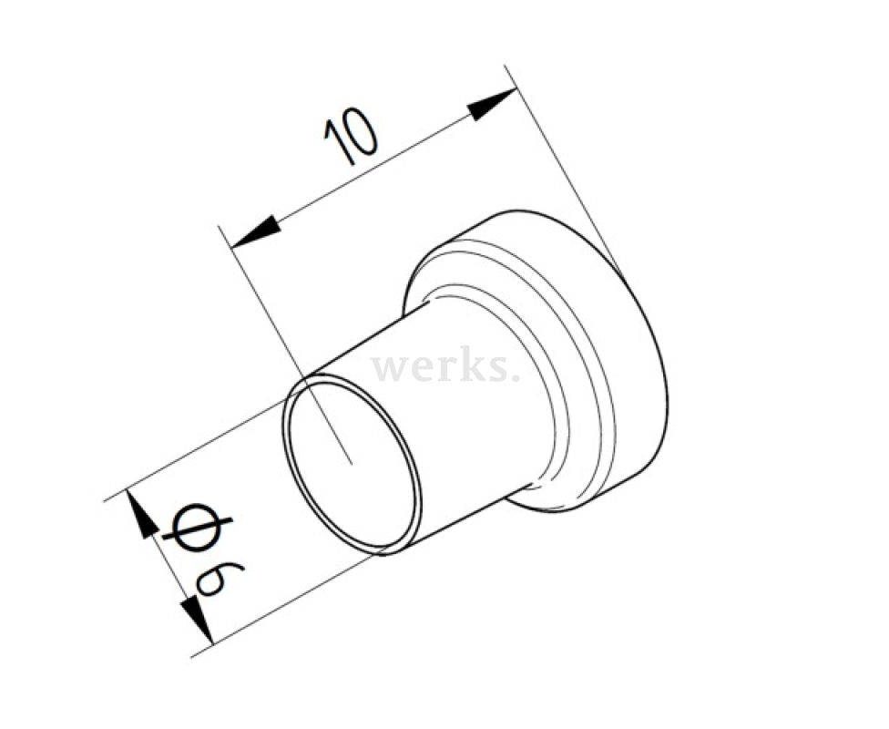 Специальное прямое паяльное сопло для термофена i-TOOL AIR S. Диаметр сопла составляет 6 мм. Внешний диаметр обоймы равен 9,5 мм. Длина сопла составляет 10 мм. Используется с термофеном i-TOOL AIR S.