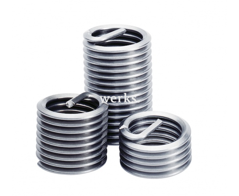 В комплект входят 5 спиральных сверл диаметром Ø5.20-12.40 и длиной 85-140 мм, 35 резьбовых вставок, 5 метчиков диаметром Ø6.04-14.27 и длиной 66-95 мм, 5 заверток диаметром Ø3.20-9.00 и длиной 104-150 мм, а также 5 оправок для цапф диаметром Ø3.60-9.00 и длиной 100-120 мм. С помощью спирального сверла удаляется старая поврежденная резьба, после чего новая резьба нарезается метчиком. Необходимая резьбовая вставка устанавливается с помощью завертки. Оправка используется для облома концевая цапфа. Благодаря допускам и форме резьбовой вставки создается новая резьба, которая по качеству не уступает оригинальной. Набор поставляется в прочном и удобном кейсе, предназначенном для хранения и транспортировки.